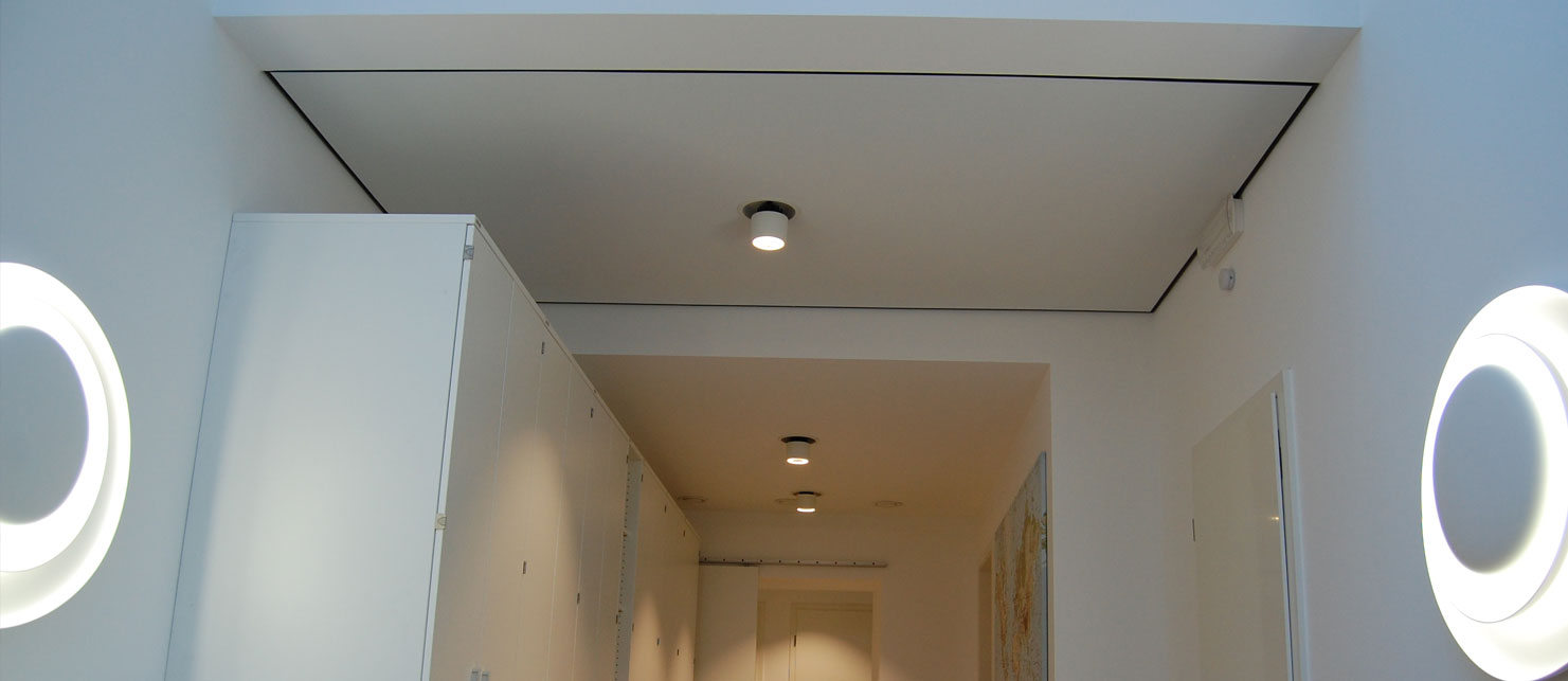 Die flexible Spanndecke bietet auch bei sehr speziellen Anforderungen im Objektbereich immer eine Lösung an: besserer Schallschutz im Großraumbüro, integriertes Licht in der Flurdecke, dezente Lüftung im Konferenzraum oder repräsentatives Design im Foyer.